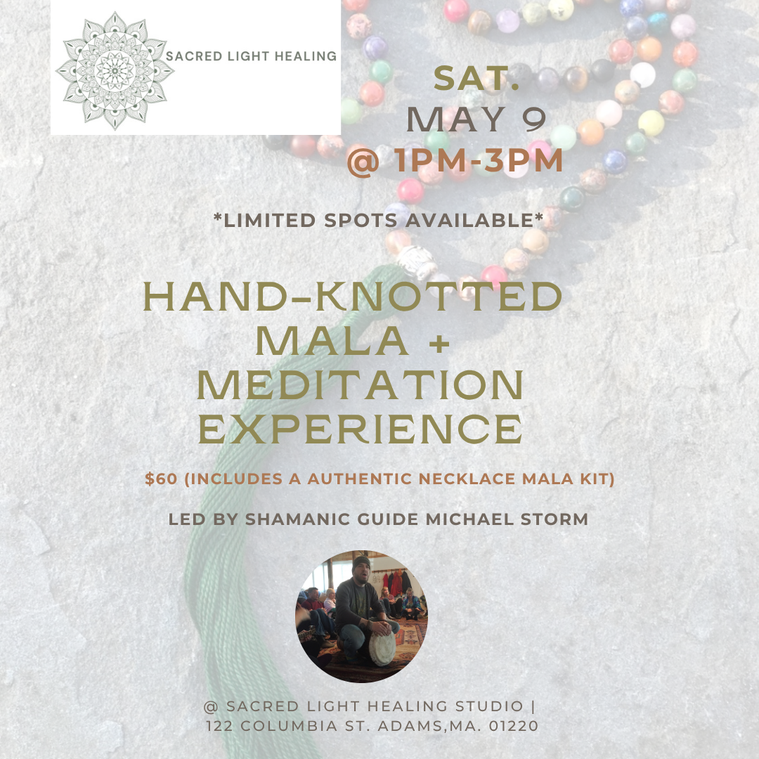 Shamanic Guide Michael leads you through a powerful hands-on journey where creation becomes ceremony, as you hand-knot your own mala while dropping into meditation, breath and intention.