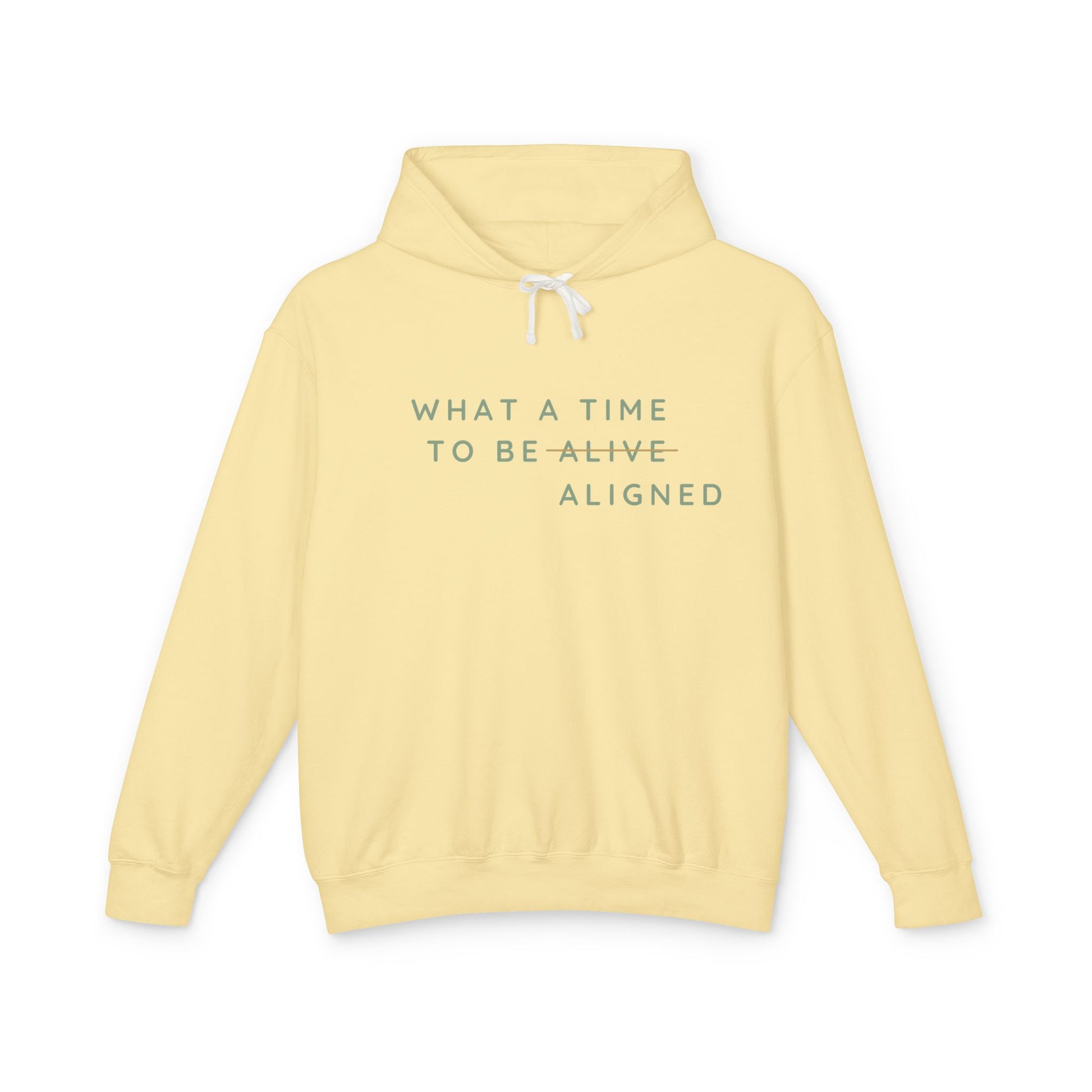 This "What A Time To Be Aligned" sweatshirt brings both incredible quality and powerful message to the mix.Elevate your casual wear with our custom hooded sweatshirts, crafted from 100% ring-spun US cotton for ultimate softness and durability.